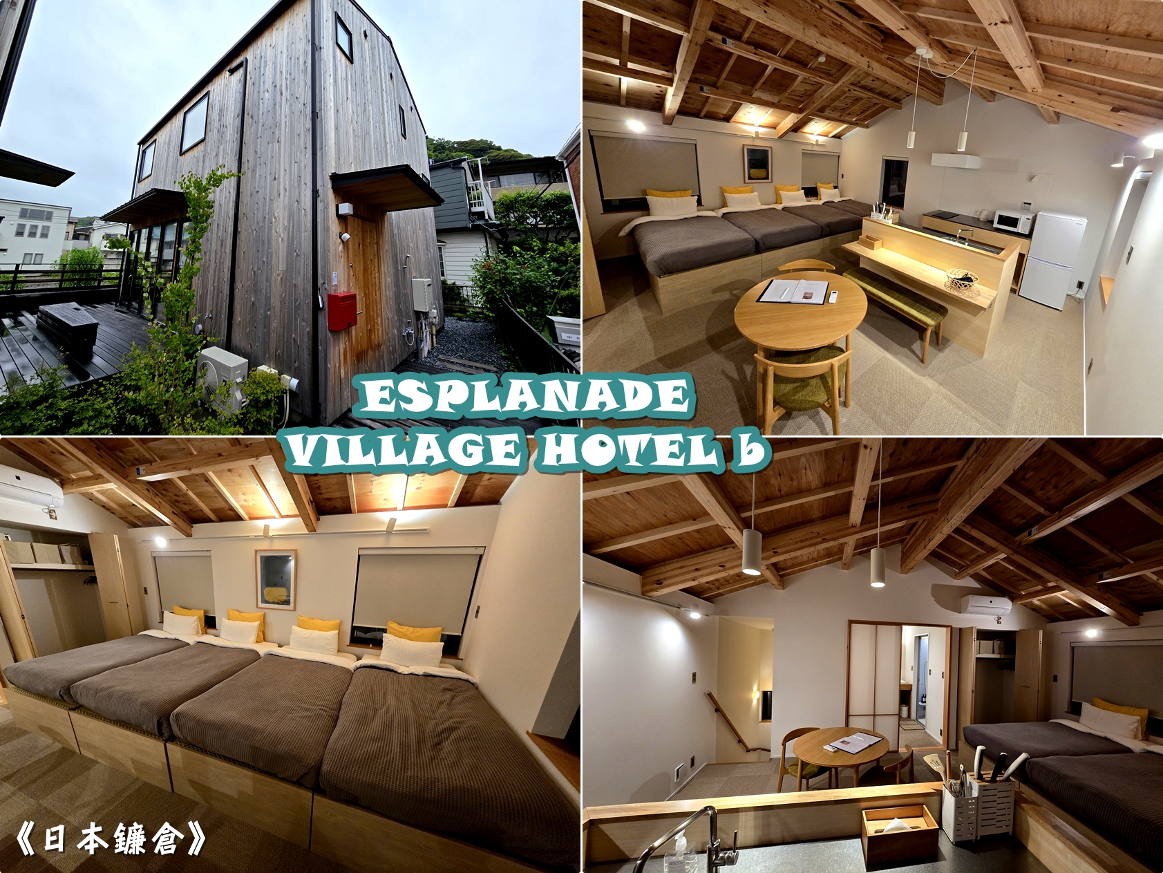 距離江之島電鐵長谷站步行五分鐘。有二棟樓一樓為商店,二樓為住宿,分別名為「ESPLANADE VILLAGE HOTEL A」和「ESPLANADE VILLAGE HOTEL B」。 A棟的二人房,房間佈置簡潔,僅配備書桌和床鋪,旨在作為工作度假之用。 B棟是四人房,則配備齊全的廚房、炊具和餐具,客人可以在住宿期間享用使用鎌倉蔬菜和當地海鮮烹製的菜餚。該地點步行即可抵達長谷寺和鎌倉大佛(高德院)。