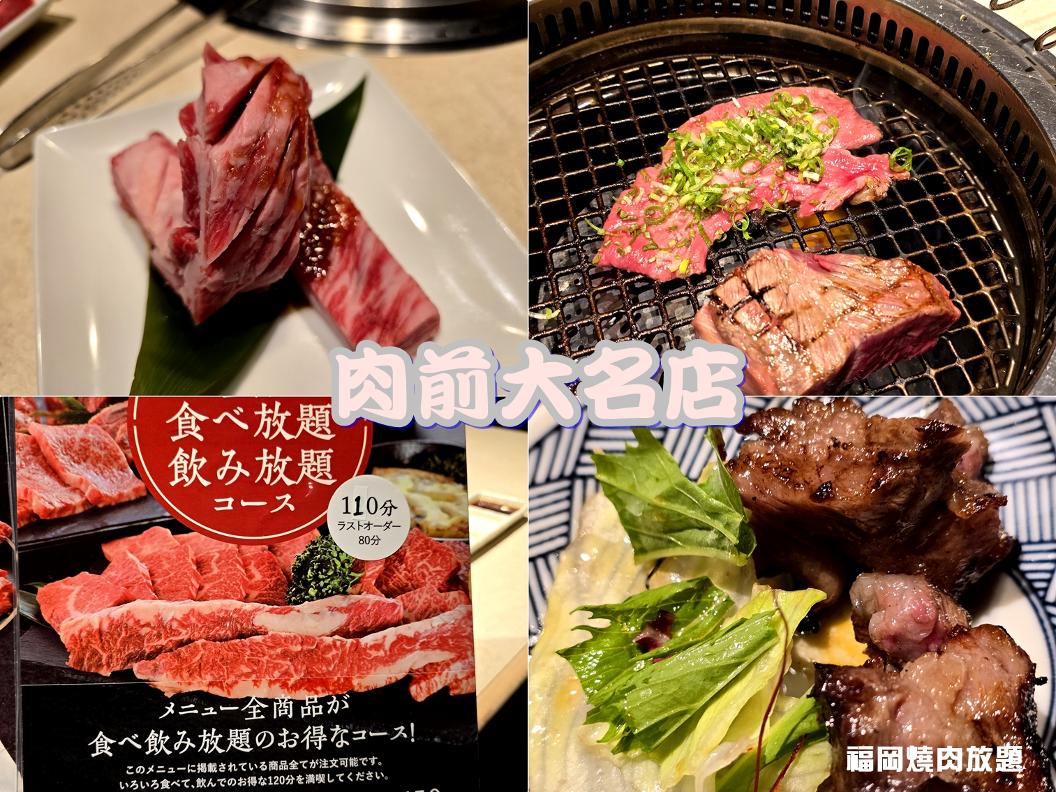 『NIKUZEN 大名店』推出黑毛和牛燒肉吃到飽及無限暢飲,用餐時間限時2小時,可在無煙燒肉桌大快朵頤;而它是一家以九州產A4・A5等級的牛肉熱門燒肉店;這家烤肉店於2012年在福岡市中央區大名開幕。吃到飽方案分為輕量(ライト)、標準(スタンダード)、高級(プレミアム),兒童可享半價優惠,能夠享受到超值美味的黑毛和牛。